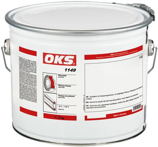 OKS 1149 to smar silikonowy zawierający PTFE do smarowania długotrwałego par tworzywo sztuczne/tworzywo sztuczne, tworzywo sztuczne/metal i elastomer/metal do łożysk pracujących pod niskimi i średnimi obciążeniami i przy niskich i średnich prędkościach.